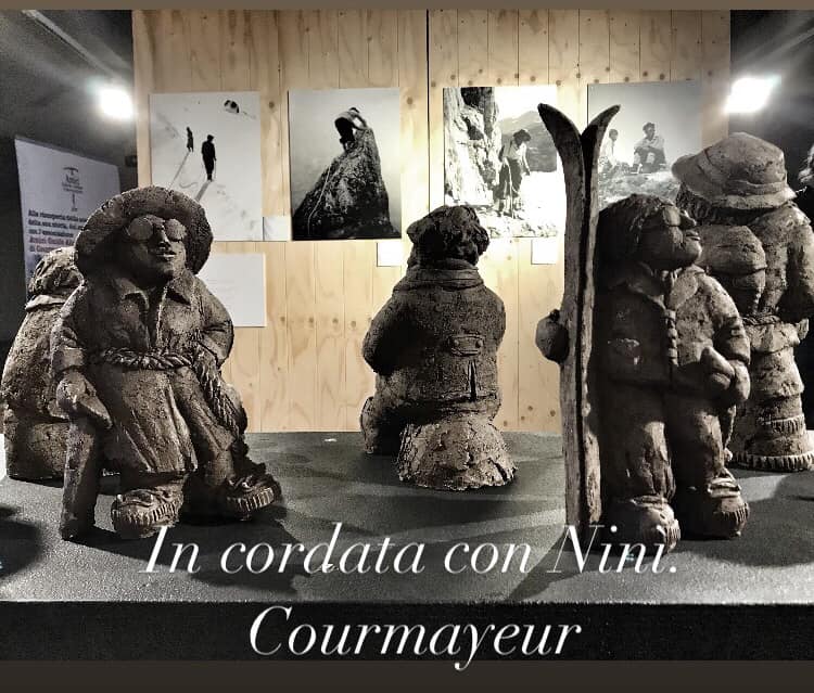 In mostra sono presenti nove sculture di Marina Torchio, realizzate in grès, che raffigurano Ninì e Gabriele, creando così un’ulteriore lettura dei personaggi. Sempre all’interno della mostra, sono esposti gli album fotografici di Ninì, volumi dal valore storico immenso che documentano la sua intensa attività alpinistica. Una parte dell’esposizione è dedicata alla proiezione del pluripremiato film “Ninì “di Gigi Giustiniani e Raffaele Rezzonico, per Associazione La Fournaise.