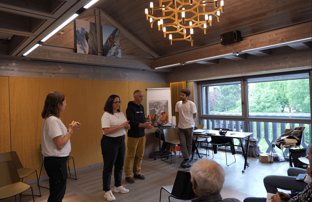 La mattina dell’evento è stata presentata la storia della Fondazione Salomon, con l’illustrazione della sua missione e dei punti salienti che ne hanno determinato la crescita e l’espansione. Oggi la Fondazione è determinata nell’ampliare ulteriormente il suo operato, interagendo sia con le realtà associative francesi che con quelle italiane e svizzere che gravitano intorno al territorio del Monte Bianco.
